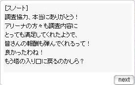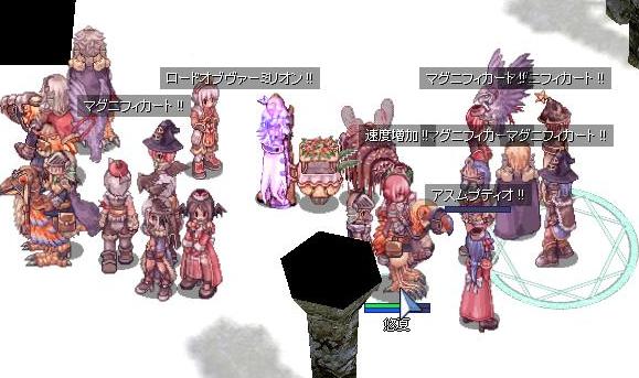 ちょっと安心♪ 中央に沸いたミステルテイン! いちお叩いてはいますがたぶん2桁のダメしか出てなかったハズ これが真っ白現象w いつもは立ち上げなおすのですが さすがにココではそうもいかないのでしばらくこのままw バランスよくいる感じ!しかも指揮を取ってくださる人もいて楽でした~ 10階への扉が開き、西の小部屋へ走り抜けます。 ここで出来杉さんと合流!カスティもいた気がするけど・・・あれれ? 結構人数が残っていて中まで引き寄せる前に倒しちゃう?みたいな 出てるのはBOSS?なので悠夏近づけず けど、たまにはポコッと1発入れてみたりw 西の小部屋近くに敵がいなくなると少しずつ北の小部屋のほうに移動 敵を釣ってくると言って突撃していったLKがつれてきたのが! ダークイリュージョン・・・ひぃ ミュータントドラゴン。 これにはぜんぜんあたらなかった気がする そして!2度目のクリア! 全員で記念撮影!ちょうどお誕生日だった人がいらっしゃって おめでとう!とお祝いw 悠夏も1週間前ならw ここで真っ白画面の直し方を聞きました /lightmap で直るそうです。なってしまったらお試しくださいw |
